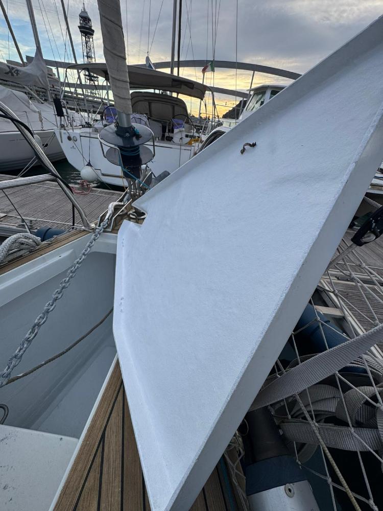 In 2005, with the launch of the new Grand Soleil 45, Cantieri del Pardo embarked on a new course in the high-quality cruising-racing yacht sector. This was, in fact, a model that would set a new standard of excellence in both categories. The hull design by Jüdel & Vrolijk follows, to a certain extent, in the wake of the successful Dehler 47, with increased beam and more sporty lines in general, but without losing sight of comfort in cruising. And indeed, the GS 45 has earned a great reputation as an excellent boat in all conditions and particularly comfortable in heavy winds. Compared to a modern cruiser-racer, the GS 45 offers greater safety, with a closed stern, but well equipped for swimming at anchor. The spacious cockpit also allows for entertaining evenings, while the spacious interior, with three generously sized cabins and two bathrooms, provides space and comfort that is unusual in a sports cruiser. Add to this the elegance and craftsmanship of the expert carpenters of El Pardo, and the result is a boat at the top of its class, where it remained throughout the entire time this model was in production. The success of the formula is confirmed by the approximately 150 units built. The ‘Rock 'n Roll’, as the boat on offer is called, has a Sparcraft Performance mast, a teak deck in magnificent condition and rigging that far exceeds what is necessary on board. The dimensions of the four main winches, the presence of an electric winch on the piano, the spinnaker pole: everything is there to take this boat to its limits in complete safety. The complete electronics, powerful bow thruster, good water and diesel fuel availability, and generator will help in the day-to-day running of offshore cruises. The maintenance carried out by its current owner ensures trouble-free use for a long time to come.